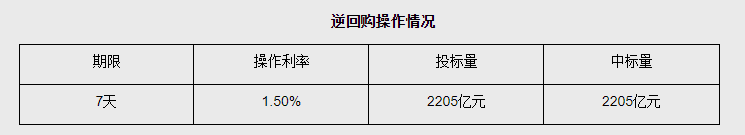 【大河财立方消息】4月22日,中国人民银行以固定利率、数量招标方式开展了2205亿元7天期逆回购操作仁信,操作利率1.50%,与此前持平。因今日有1645亿元7天期逆回购到期,实现净投放560亿元。